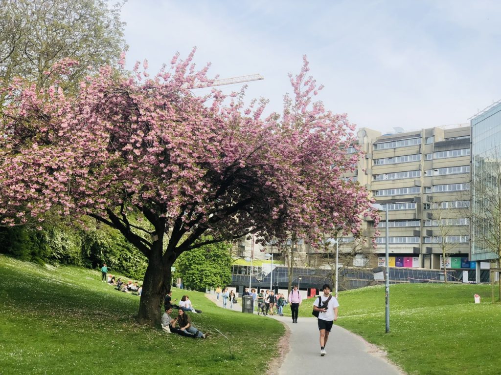 Vì mình học ngành International Business nên sẽ học ở Campus Etterbeek là Campus chính của nhà trường. Ấn tượng đầu tiên của mình về Campus này là rộng và nhiều cây xanh. Mình nhớ rõ lần đầu gọi video call về cho anh trai dắt đi thăm trường mà anh mình còn hỏi đang đi trong rừng à. Với một khuôn viên xanh như vậy nên mỗi lần stress là mình hay ngồi dưới tán cây mà hít thở không khí nên công nhận màu xanh lá chữa lành tâm trí.
